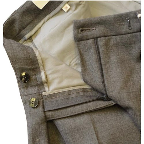 ネックはバンドカラー。ASPESIロゴ入りの黒蝶貝ボタンは小さめです。